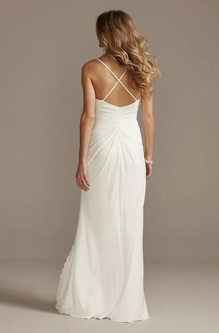 Elegant Light Wedding Dress has a V-neck with split dress to represent fancy style, suitable for pre-wedding and wedding party.